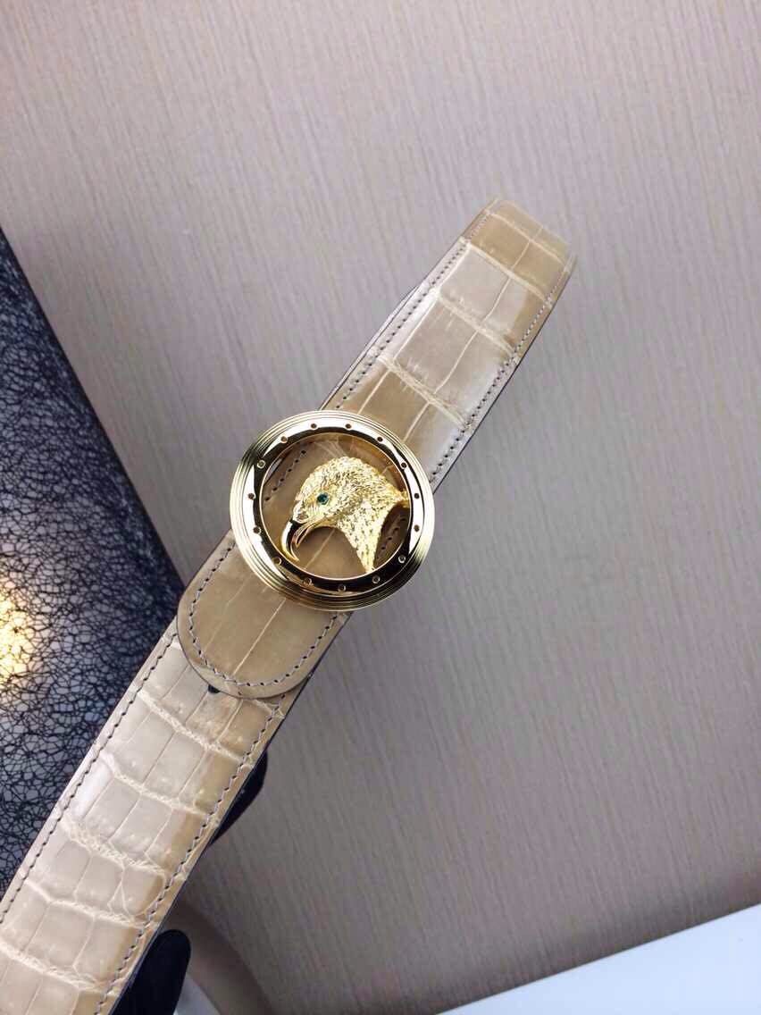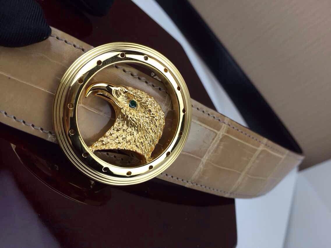 Stefano Ricci 史蒂芬劳.尼治 高光鳄鱼皮带意大利代购 老鹰扣 金 银 玫金三色扣头,配精美木质礼品盒(杏色)
