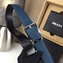 PRADA普拉达经典板扣十字纹原版皮带 宝蓝色