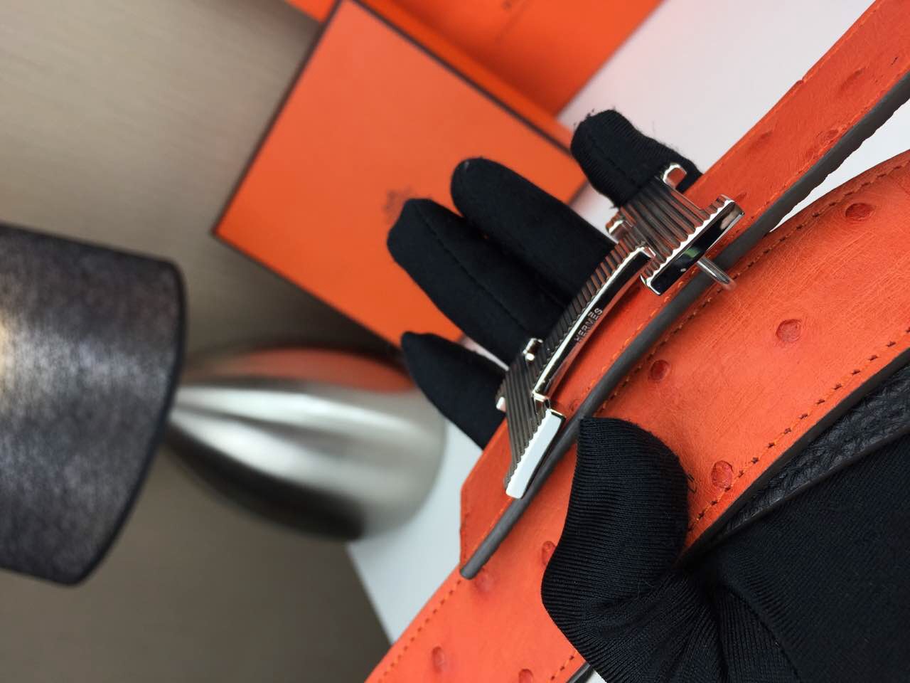 Hermes爱马仕皮带厂家直销 成功男士必备动物皮纹路 橙色