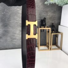 爱马仕皮带批发 H家经典扣系列 鳄鱼皮带身颜色可自由订制 宽3.2CM 码数85-105欧