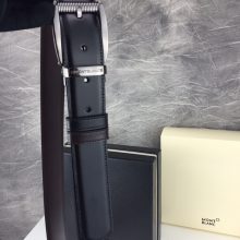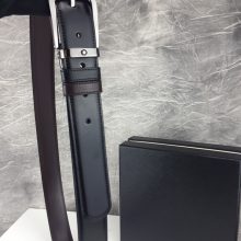 广州皮带厂家 Mont Blanc皮带 进口意大利牛皮 黑色啡色带身 双面可用 宽3.2CM
