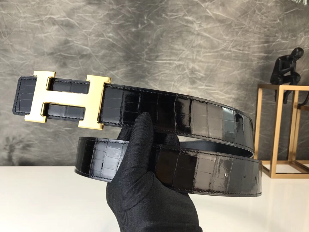 爱马仕皮带批发 H家经典扣系列 鳄鱼皮带身颜色可自由订制 宽3.8CM 码数85-105欧