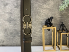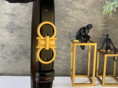 顶级皮带批发 Ferragamo男款新款腰带 金银枪三色扣 进口开边牛皮 宽3.5CM 码数85-110欧