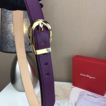 Ferragamo 菲拉格慕 女款 扣头金银两色可选 带身意大利十字纹牛皮 黑色配紫色 双面可用 带宽2.5
