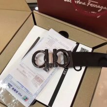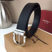 Ferragamo 菲拉格慕 黑色带身 双面进口法国小牛皮 金色针扣