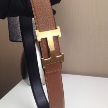 爱马仕HERMES顶级驼色配黑色平纹皮带H扣 宽度3.8CM