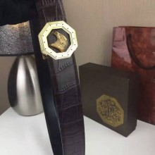 SR男士皮带 不锈钢八角金扣头 配黑色鳄鱼纹带身