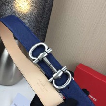 菲拉格慕经典款腰带 316不锈钢扣配宝蓝色进口十字纹带身