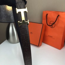Hermes爱马仕皮带批发市场 动物皮纹 咖啡色