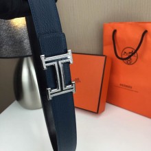 Hermes爱马仕皮带批发 魅力男士必备 深蓝荔枝纹 316双排钻金&银扣