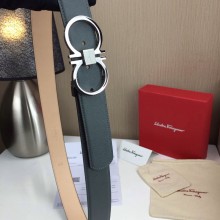 Ferragamo 菲拉格慕 白色不锈钢扣配灰色十字纹带身